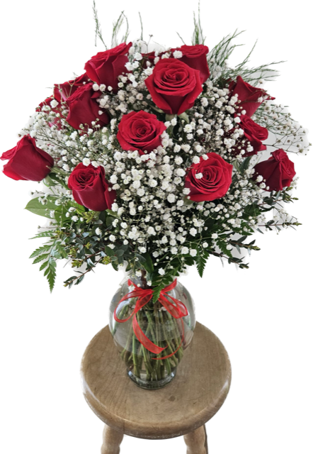 A dozen roses, elevated.